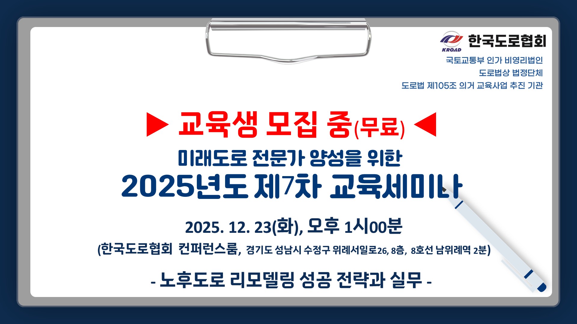 (한국도로협회) 2025년도 제7차 교육세미나 개최 안내