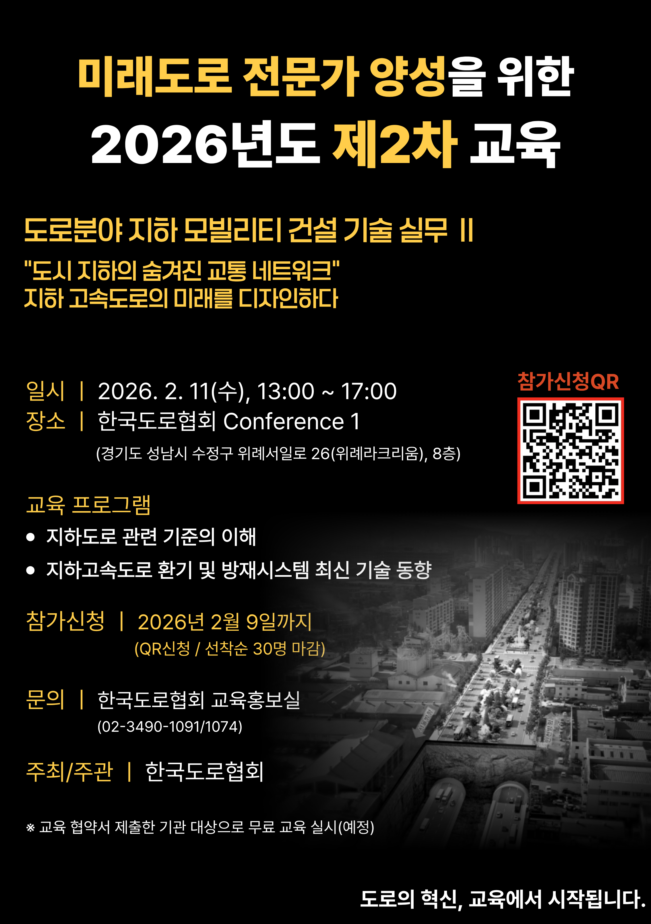 (한국도로협회) 2026년도 제2차 교육 개최 안내 (지하 모빌리티 건설 기술 실무Ⅱ)